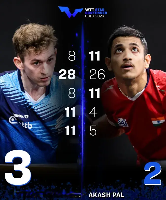 北京时间1月14日凌晨,WTT球星挑战赛多哈站男单资格赛上演了一场惊心动魄的对决。26岁的德国选手塞德里克-迈斯纳(世界排名121位)在1-2落后的不利局面下顺配宝,以3-2(8-11、28-26、8-11、11-4、11-5)逆转印度22岁选手阿卡什-帕尔(世界排名104位)成功晋级。迈斯纳随后将在资格赛最终轮,对阵中国选手薛飞。单局打出28-26,这可以排名11分制国际比赛历史第二位。