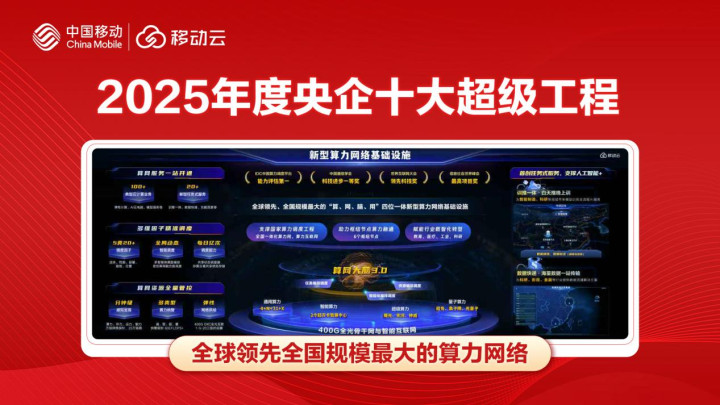 近日兴启网,国务院国资委新闻中心发布的“2025年度央企十大超级工程”榜单正式揭晓。凭借对国家“全国算力一张网”战略的精准承接、领先的技术创新实力和广泛覆盖的规模应用成效,中国移动打造的全球领先、全国规模最大的“算-网-脑-用”四位一体新型算力网络基础设施成功入选,彰显数字基建领域央企引领作用。